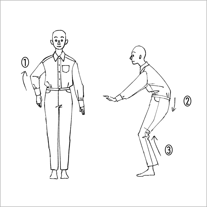 ★採寸をする際は、このような動作に影響なく着用できるかの確認しながら決めていきましょう