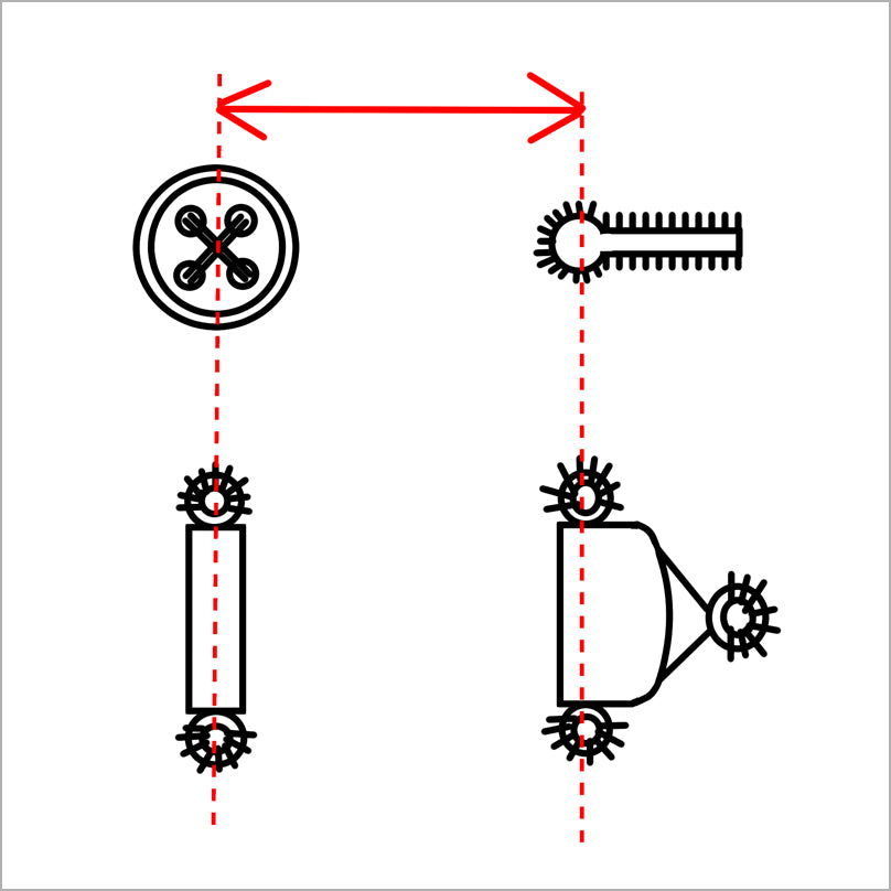前中心のファスナーを開け、ボタンの中心からボタンホールや、ホックの間を測ります。